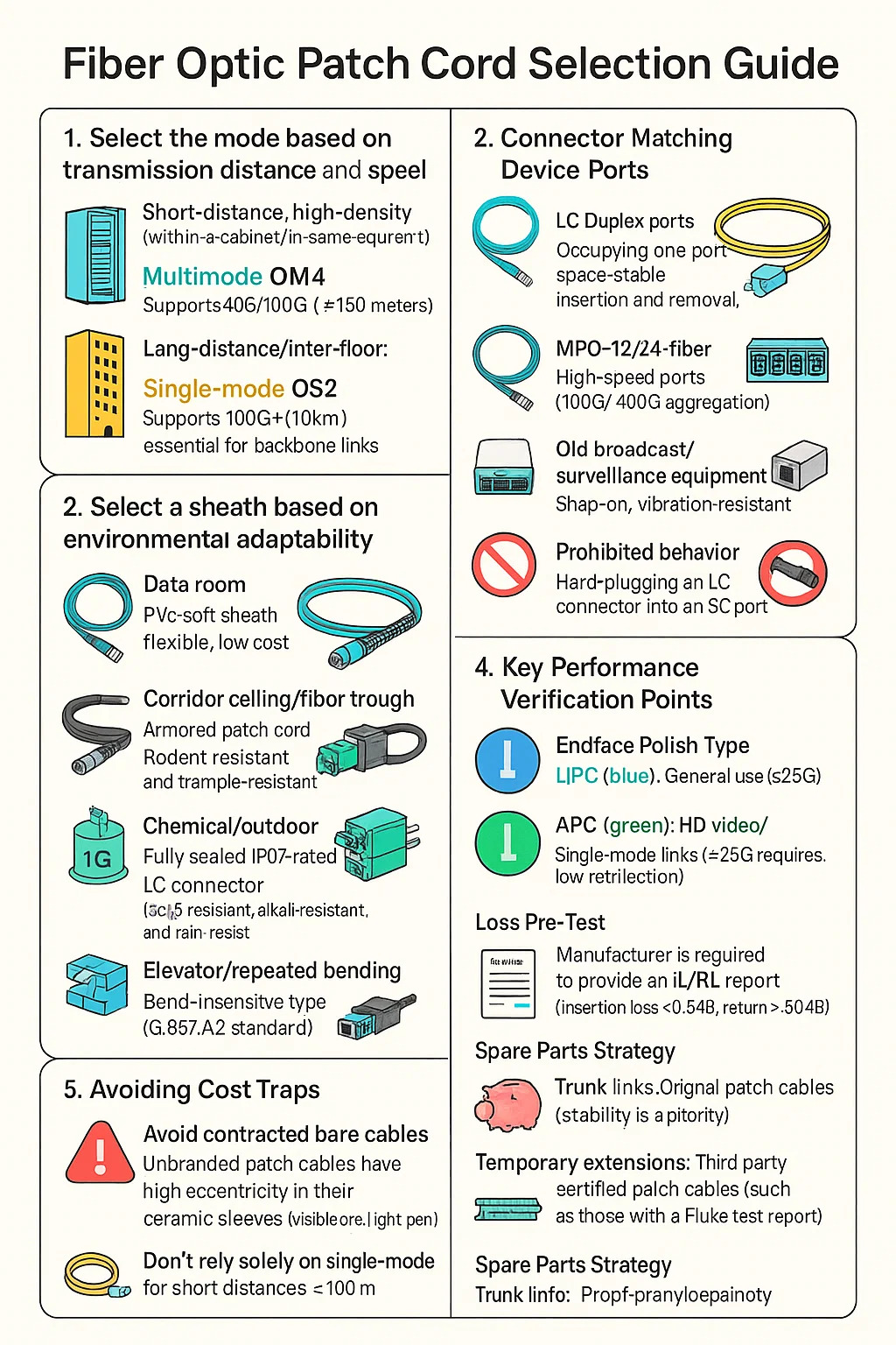 Não confie apenas no modo único para distâncias curtas: Para distâncias de ≤100 metros, os cabos de modo único exigem módulos ópticos de preço mais alto (os cabos multimodo economizam 60% do custo).