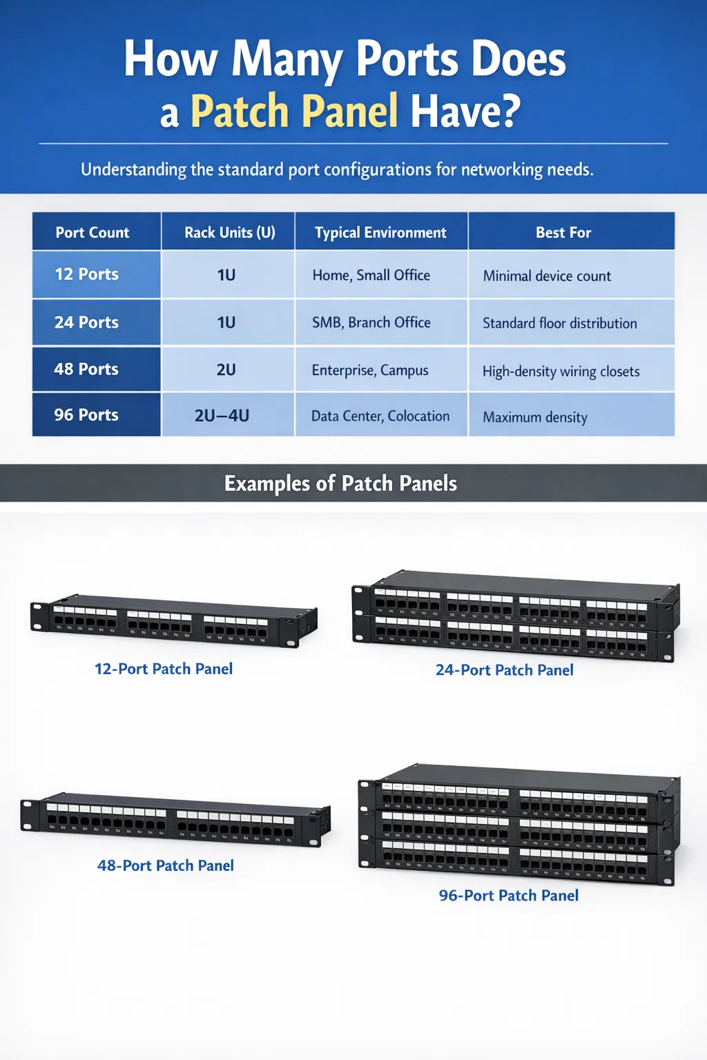 Port count is not arbitrary — it directly determines how many network devices you can terminate and manage from a single panel. Choosing the wrong port count leads to either wasted rack real estate or chaotic cable sprawl that becomes a maintenance nightmare over time. Understanding the available configurations is the first step toward a clean, scalable network infrastructure.