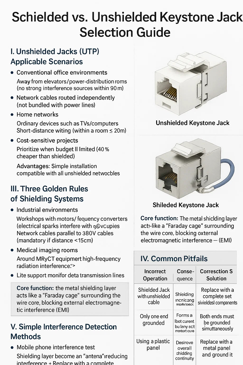 Cabo de rede O conector Keystone Jack RJ45 deve ser todo blindado (a falha de qualquer componente torna o sistema ineficaz)